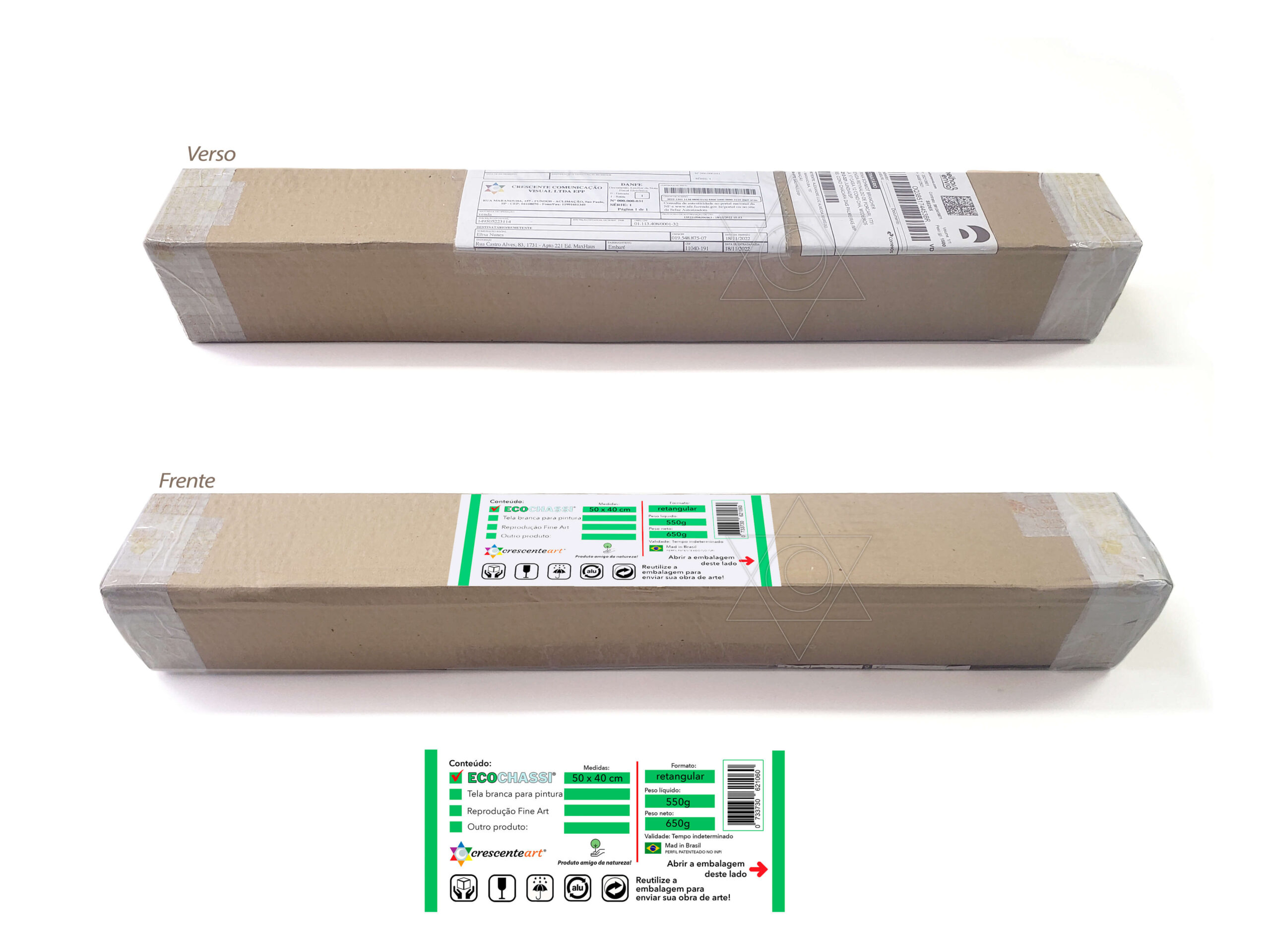 Embalagem resistente para o Eco Chassis desmontado, reutilize-a para enviar sua obra de arte!