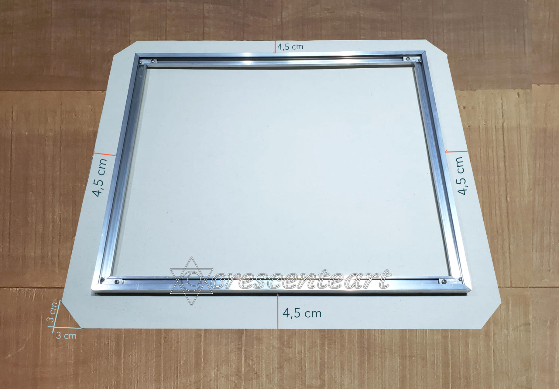 Tamanhos padrão a pronta entrega na loja, e sob medidas (por encomenda). Chassis maiores que 80 x 80 cm, vem com reforços de alumínio, perpendiculares nas extremidades e cruzando o chassi no meio.